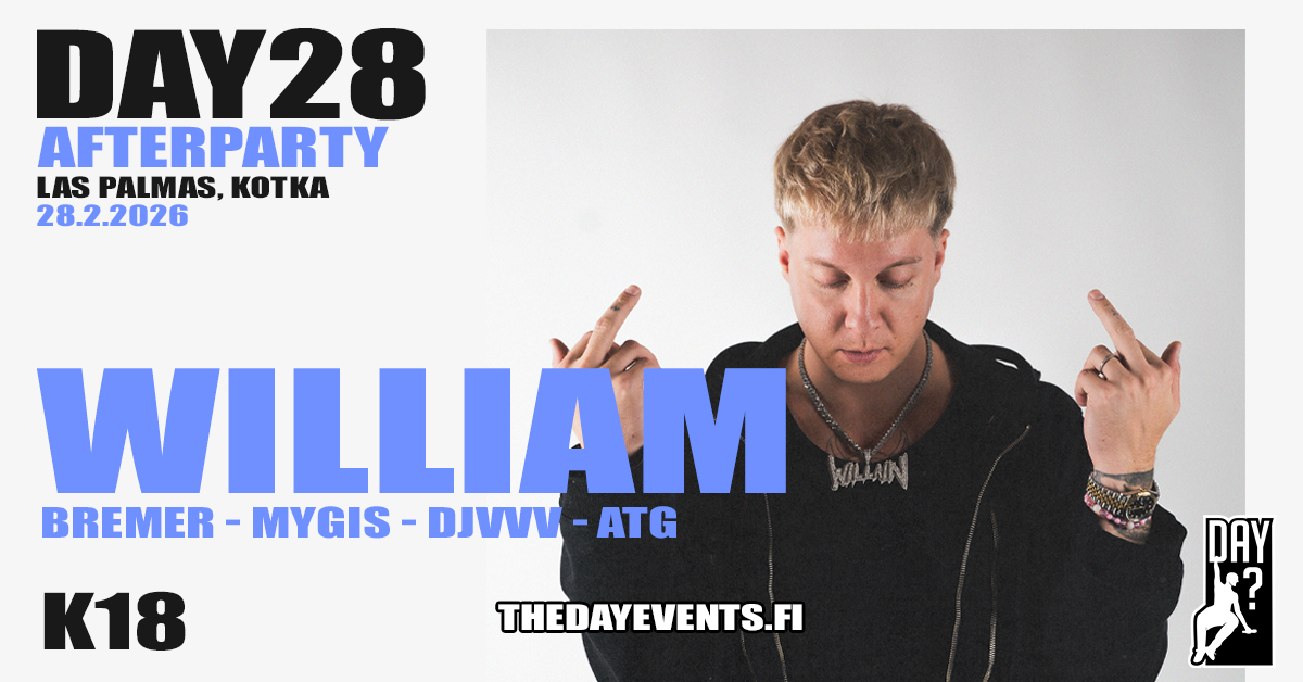 DAY28 tapahtuma saa yökerhojatkot! Jatkobileisiin saapuu esiintymään yksi Suomen striimatuimmista ja kysytyimmistä artisteista: william.