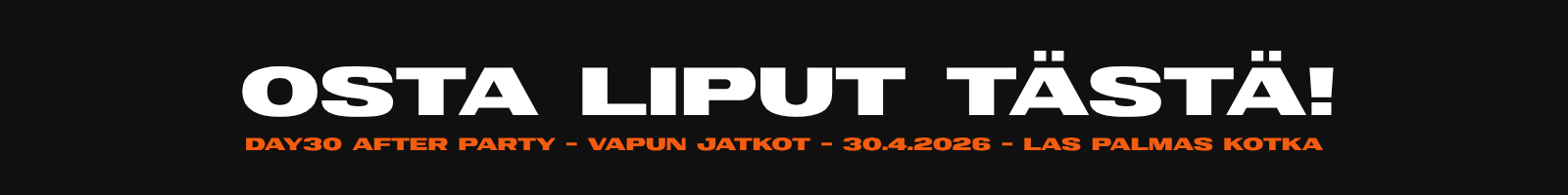 DAY30 AFTER PARTY - VAPUN JATKOT - 30.4.2026 - LAS PALMAS, KOTKA